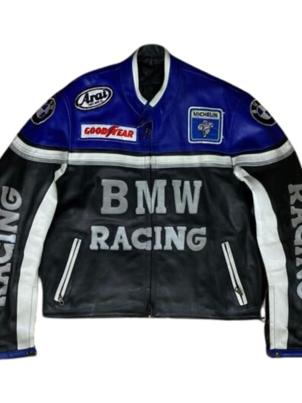 RARE BMW LEATHER JACKET RACING BIG LOGO VINTAGE