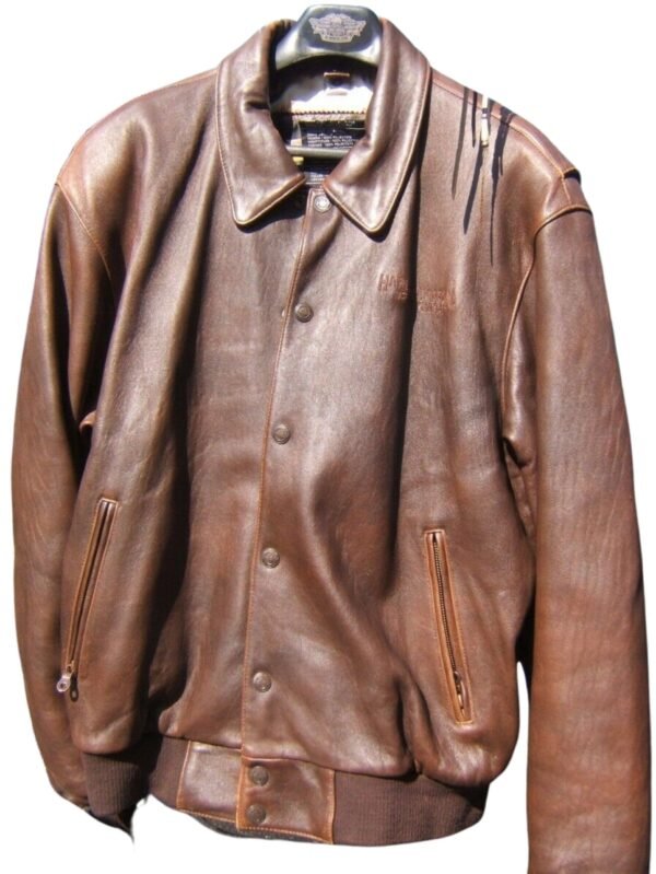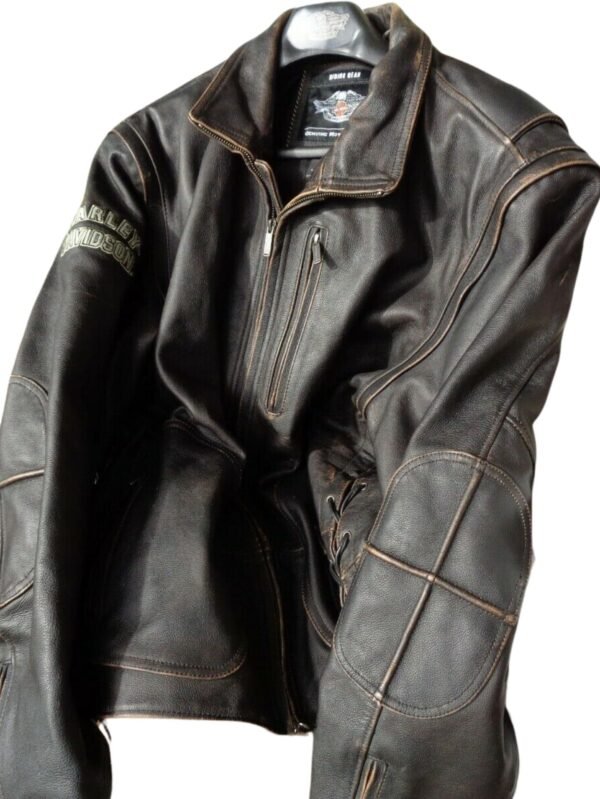 HARLEY DAVIDSON MENS GAS AND OIL LEATHER JACKET WASHED BLACK