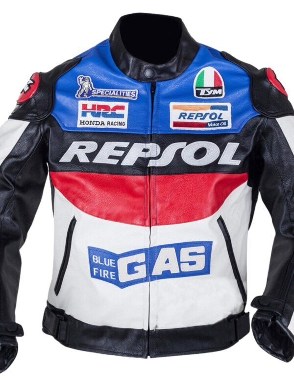 Repsol Blue Fire Gas Motorbike Rider’s Racing Leather Jacket
