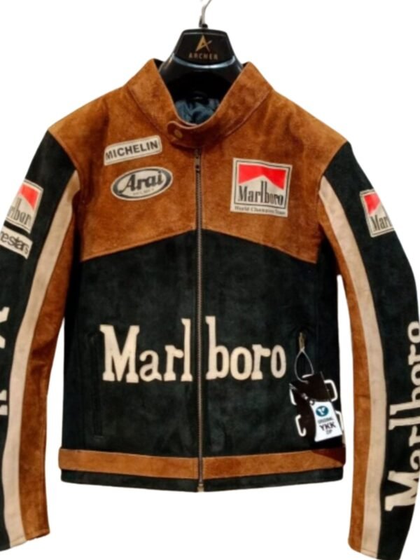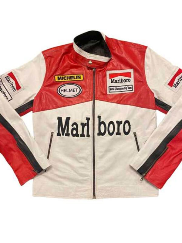 - Authentic Racing Aesthetic – Bold Marlboro branding with sponsor patches from Michelin, Arai, and Alpinestars.