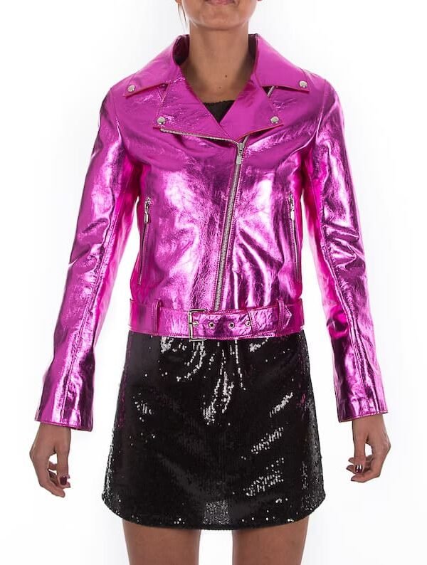 Amethyst Shimmer Women’s Metallic Leather Jacket