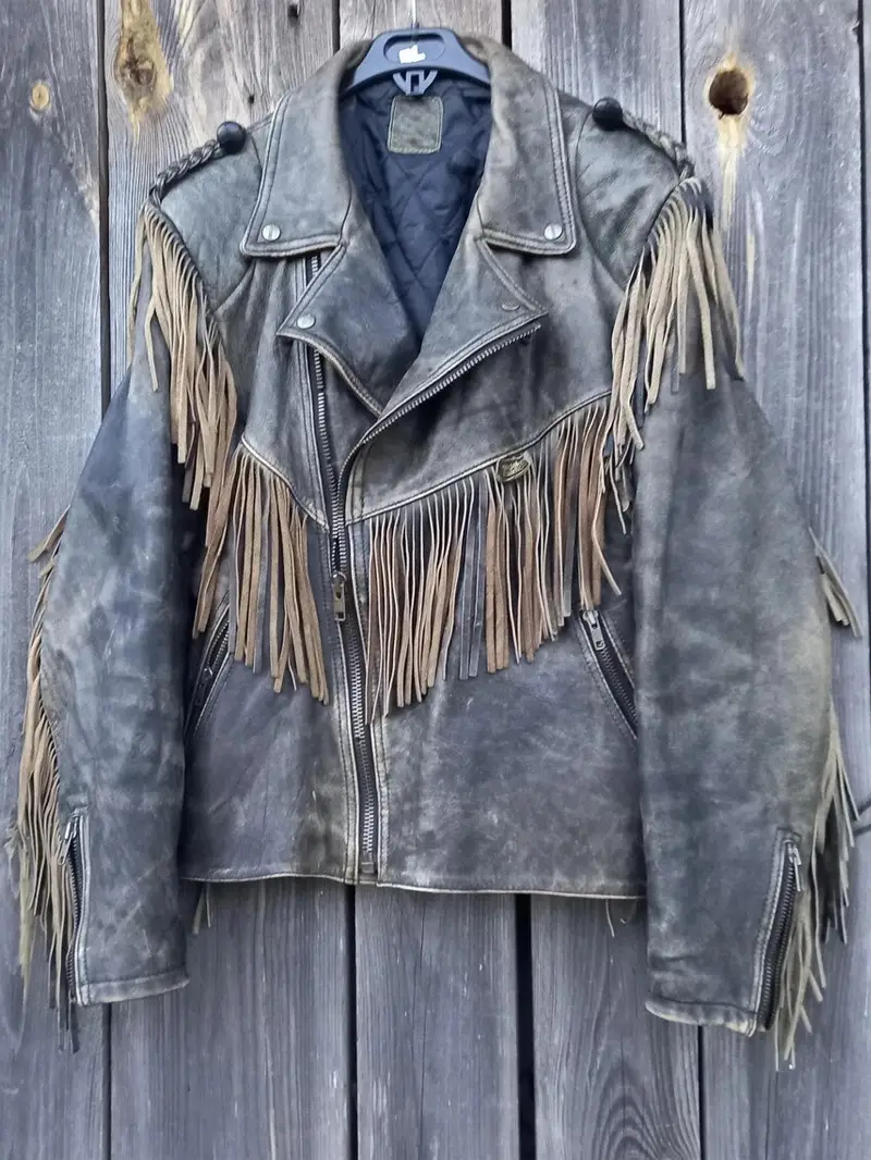 90s Vintage Fringe Leather Jacket for Men