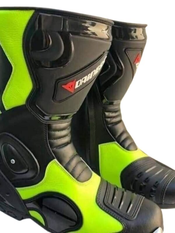 Elevate your riding experience with the Dainese VR-46 Racing Leather Boots. Crafted for ultimate performance and style, these boots are designed to meet the demands of professional riders and enthusiasts alike. With a focus on grip, comfort, and protection, they offer unrivaled performance on the track and the road.