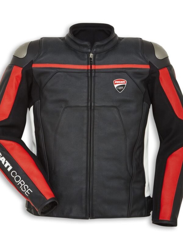 The Ducati Corse C2 Motorcycle Racing leather jacket is expertly crafted to meet the demanding needs of professional bikers, providing unparalleled safety and comfort on the track.