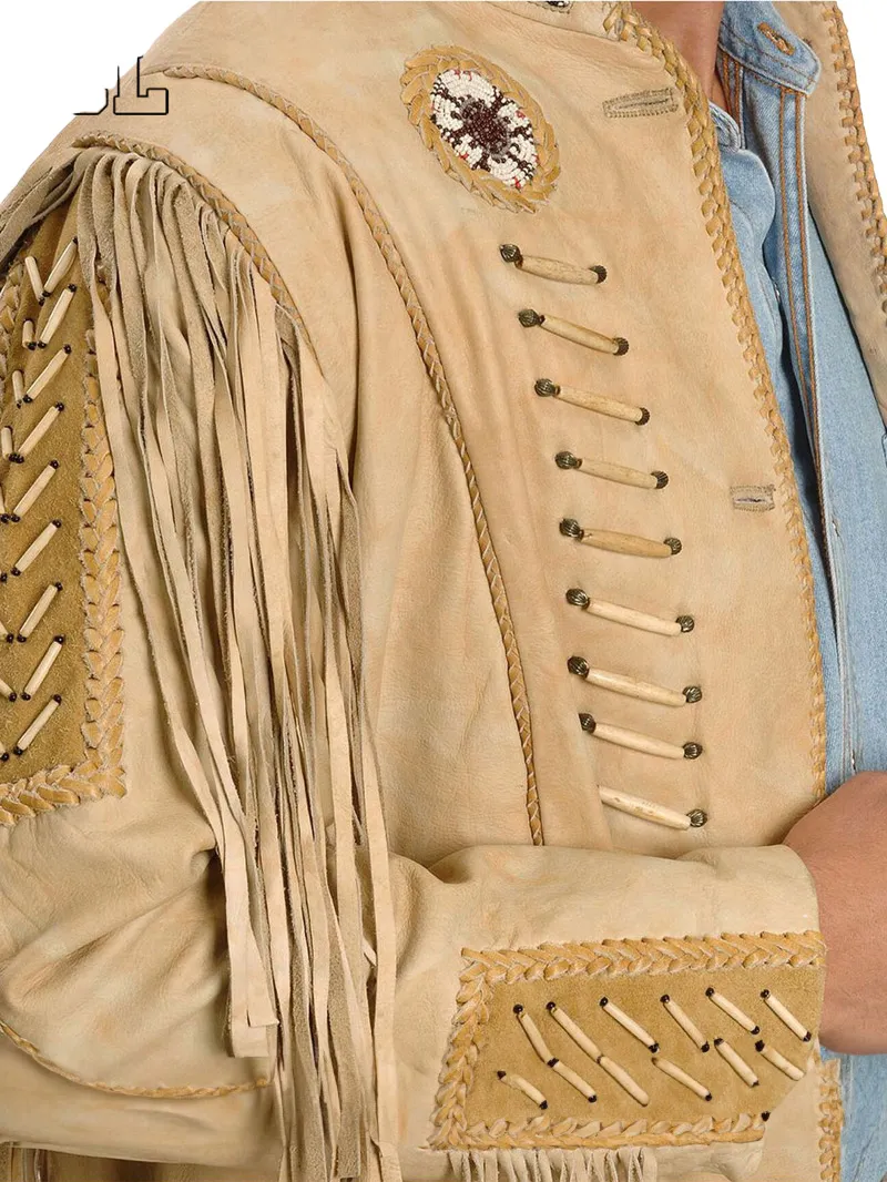 - A fringe leather jacket mens has the outer covering made with 100% pure soft suede leather.