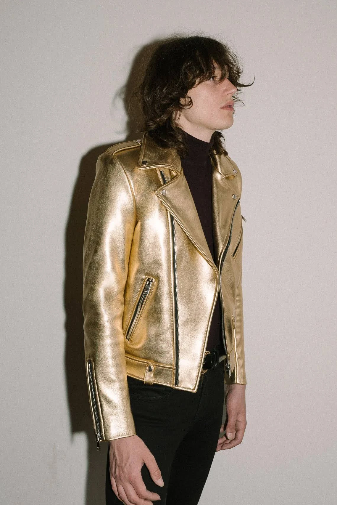 Whether paired with jeans, boots, or dresses, the Golden Biker Leather Jacket adds confidence and bold style to any outfit. It’s the perfect choice for women who love edgy fashion with a glamorous twist.