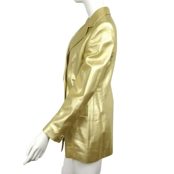 Stunning Gold Leather Jacket Women