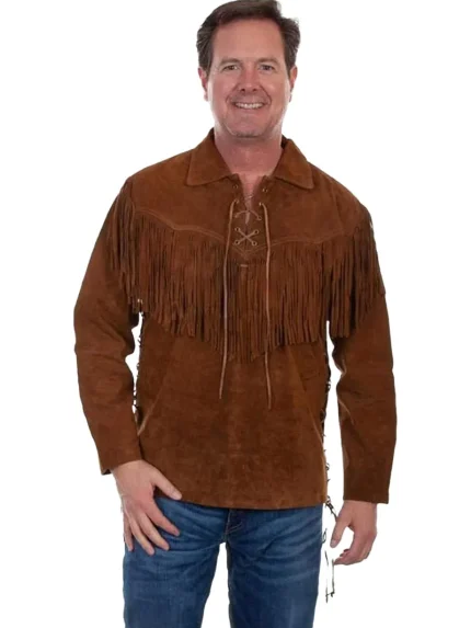 Mens Fringed Suede Leather Western Jacket