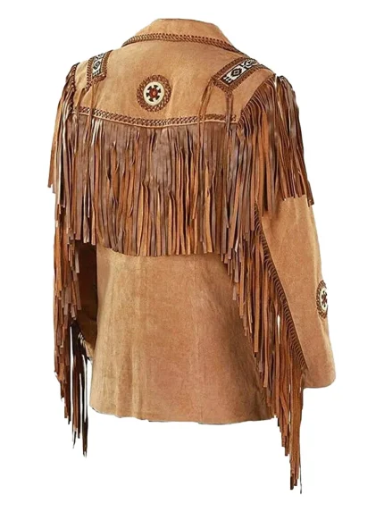- We craft the front side of the fringe jacket leather in a plain style with hanging fringes on the front yoke.