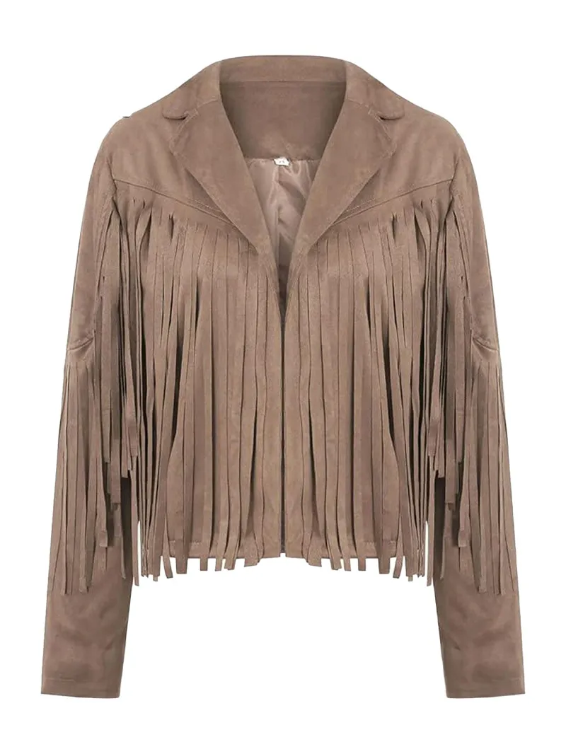 Luxury Faux Womens Suede Fringe Jacket