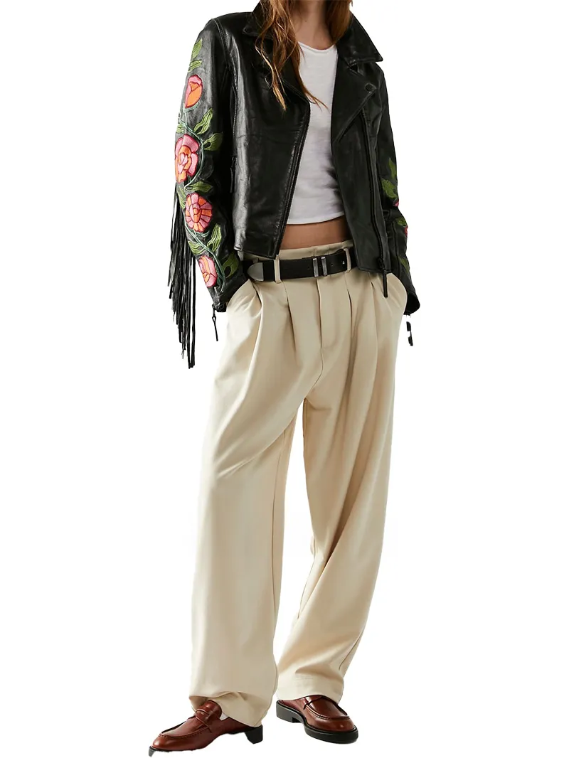 Elevate your style with the Women Embroidery Fringe Jacket from The Creative Leather. This beautifully crafted jacket blends contemporary design with vintage charm. The combination of intricate floral embroidery and playful fringes brings a touch of elegance to the biker style. Ideal for women who appreciate both fashion and comfort, this jacket is versatile, stylish, and perfect for any occasion.