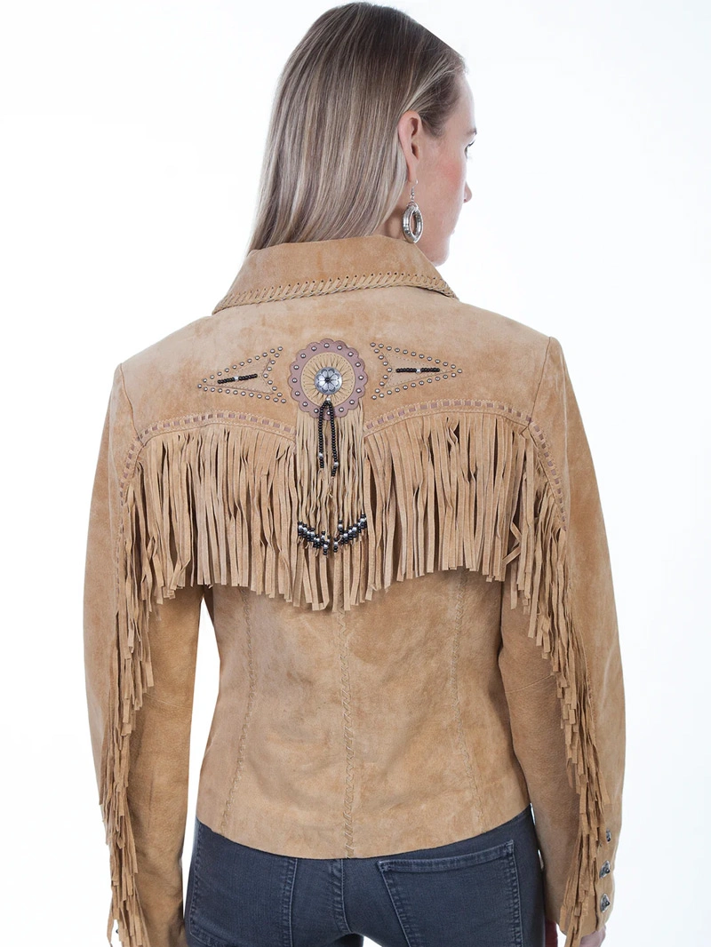 - The outer covering of the leather fringe jacket womens is designed in pure soft suede leather that has instinctive wear and tear properties.